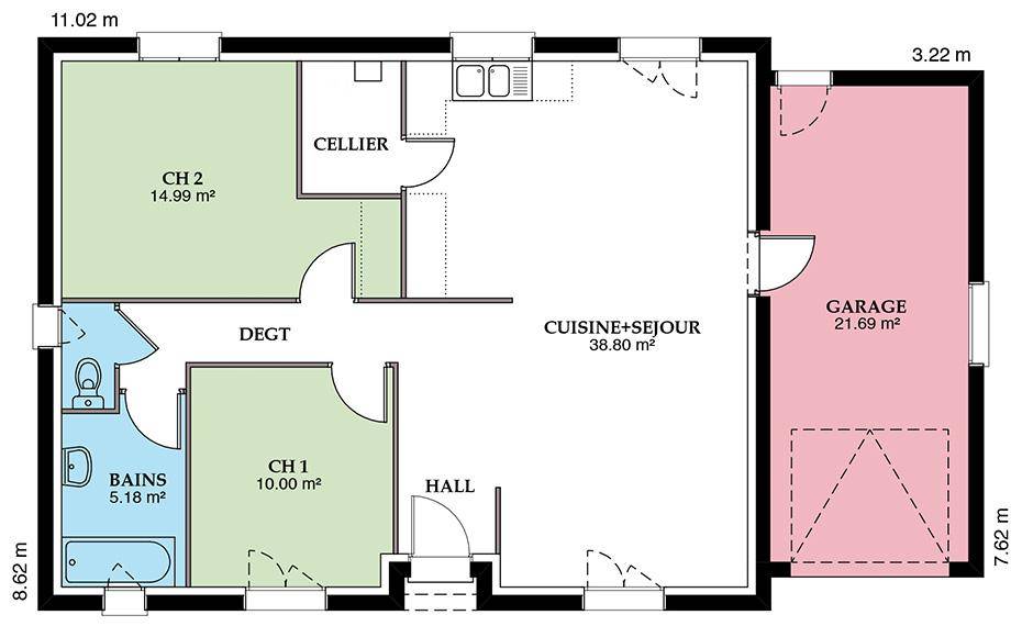 TERRAIN ET MAISONNous vous proposons cette maison neuve, la Diamant, d’une surface de 96 m², comprenant 3 chambres et 4 pièces. Cette charmante demeure se distingue par son design en L offrant une configuration optimale et une belle luminosité.Les caractéristiques principales de la Diamant incluent un auvent accueillant à l’entrée, idéal pour abriter vos invités des intempéries. De plus, un garage intégré vous permettra de stationner votre véhicule en toute sécurité, offrant ainsi un confort supplémentaire au quotidien.Cette maison à construire se démarque par son aspect basse consommation, répondant aux normes de la RE2020 en matière d’efficacité énergétique. Vous pourrez ainsi profiter d’un habitat moderne et respectueux de l’environnement, alliant confort et économies d’énergie.Ne manquez pas l’opportunité d’acquérir cette maison Diamant, alliant praticité, esthétique et performance énergétique pour un cadre de vie agréable et durable.