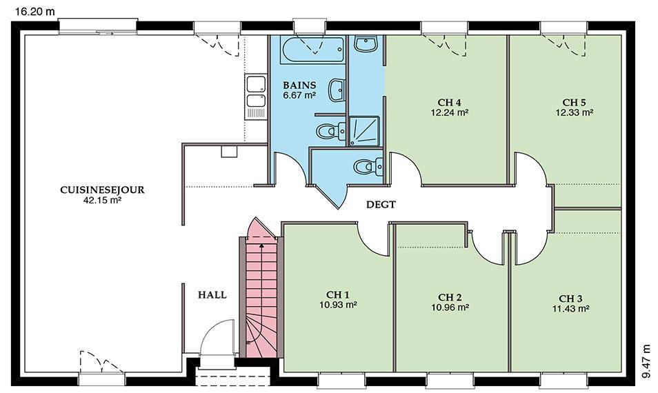 Proposée en toit 2 pans ou 4 pans, l’Aubetière s’adapte à tous les styles et s’intègre harmonieusement à son environnement. À l’intérieur, vous profitez d’un espace lumineux avec 4 chambres et un grand séjour ouvert, pensé pour la vie de famille.