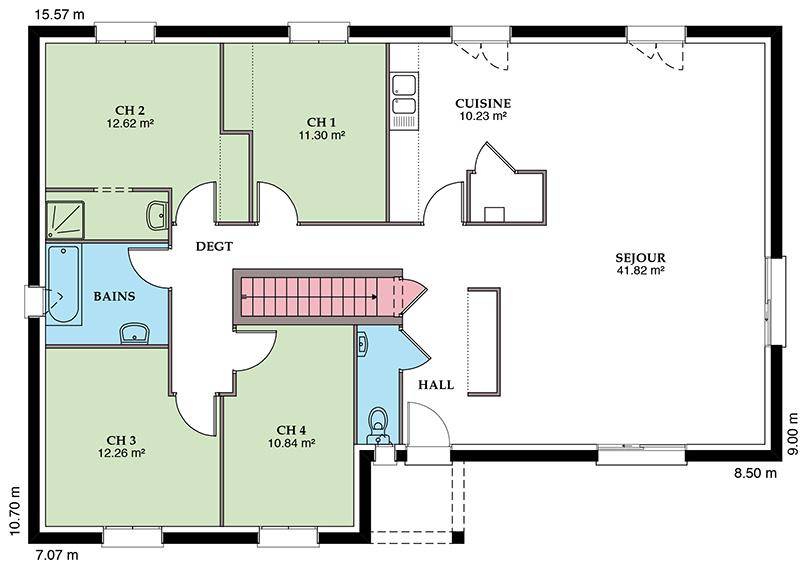 Chaque détail de la ""Mezière"" a été pensé pour offrir un confort de vie inégalé, dans le respect des normes écologiques les plus strictes. Que vous optiez pour une toiture à 2 ou 4 pans, vous bénéficierez d'une maison qui allie esthétique contemporaine et performances énergétiques de pointe.