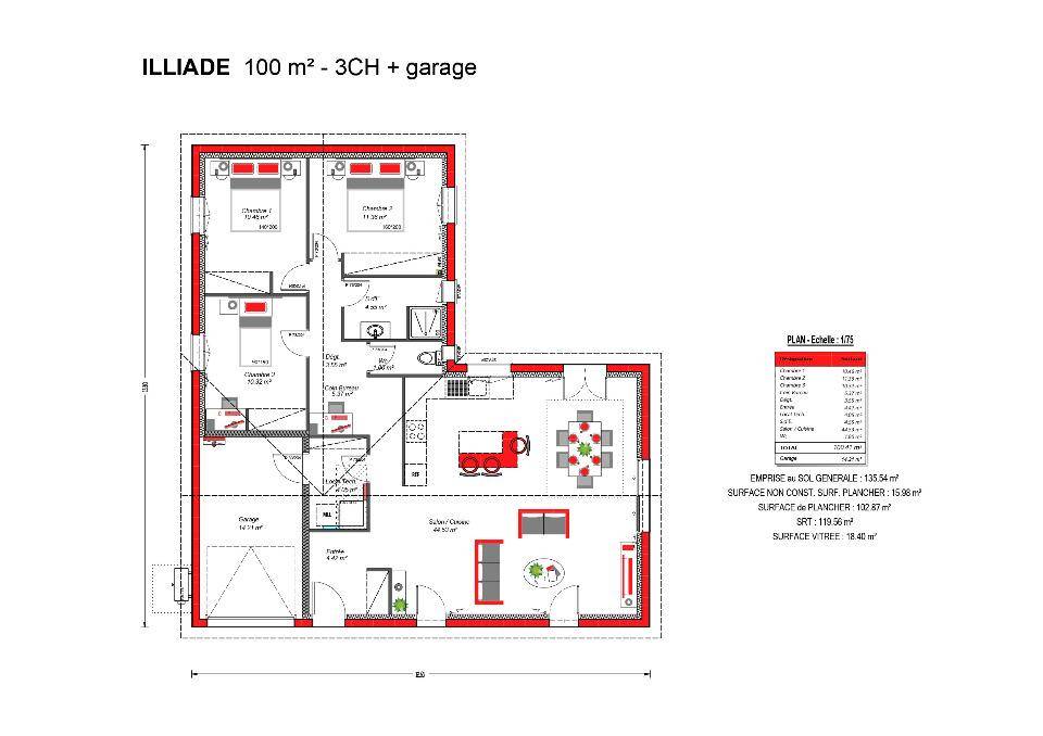 Imaginez votre maison familiale de 100 m², baignée de lumière grâce à son exposition plein Sud, pensée pour allier confort, modernité et bien-être.