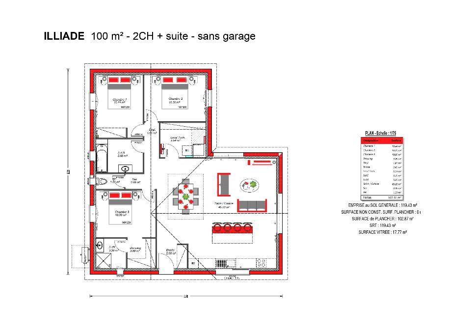TERRAIN ET MAISONSur ce terrain, nous vous proposons cette maison neuve, le modèle Ménilière, une maison plain-pied moderne qui intègre de base un garage et une longue galerie sur la face avant. Avec une surface de 100 m², cette maison dispose de 4 chambres et de 4 pièces, offrant ainsi un espace de vie confortable et fonctionnel pour toute la famille.Véritable « »tout-en-un » » de la maison individuelle, ce modèle est idéal pour votre projet de construction sur-mesure. La Ménilière est disponible avec un toit à 2 pans ou 4 pans, selon vos préférences esthétiques. Le garage intégré et la galerie avant ajoutent une touche pratique et élégante à cette maison.Les options les plus demandées par nos clients, telles que les menuiseries en aluminium et le sous-sol, sont également disponibles pour personnaliser davantage votre future maison. De plus, cette maison neuve est basse consommation et conforme à la réglementation environnementale RE2020, garantissant ainsi des performances énergétiques optimales et un impact environnemental réduit.Le constructeur Babeau-Seguin, reconnu pour offrir le meilleur rapport qualité/prix du marché, vous accompagne dans la réalisation de votre projet immobilier. Avec un prix serré et une personnalisation facile, il n’est pas étonnant que la Ménilière soit dans le top 5 des ventes de Babeau-Seguin.Ne manquez pas cette opportunité unique de devenir propriétaire d’une maison moderne, économe en énergie et parfaitement adaptée à vos besoins. Contactez-nous dès maintenant pour plus d’informations et pour planifier une visite de ce modèle exceptionnel.