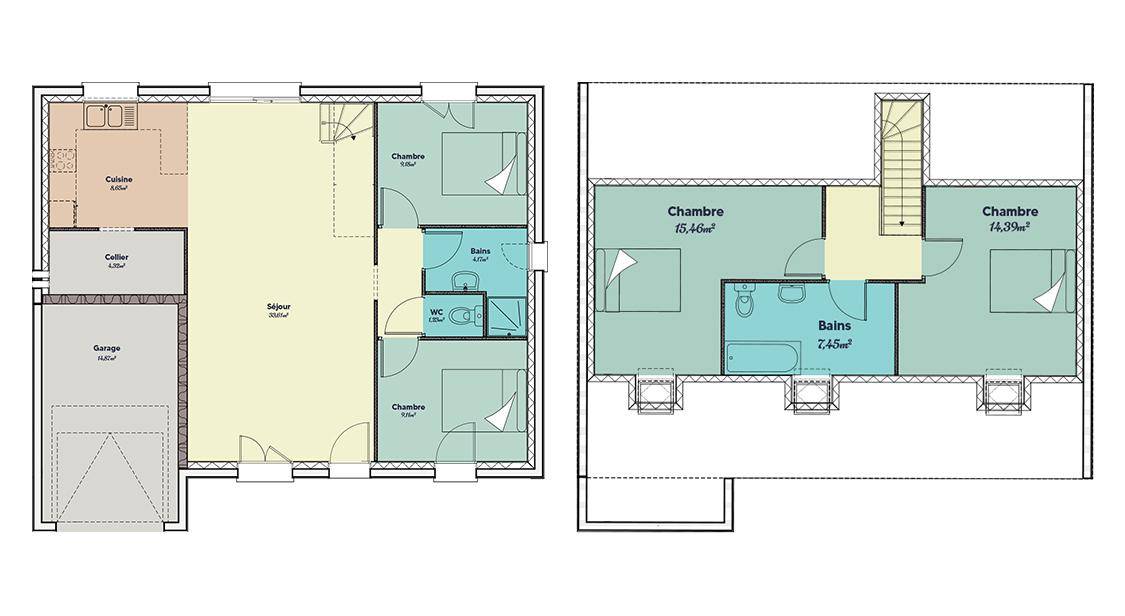 Les caractéristiques principales de cette maison incluent un garage intégré, un cellier, et des combles aménageables. Les options les plus demandées par nos clients, telles que la version Investisseur et les prises USB murales, sont également disponibles.