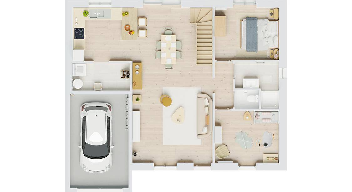 La Focus EVO est idéale pour tous ceux qui recherchent une maison complète à un prix compétitif. Elle comprend une grande pièce de jour traversante, 4 chambres, une salle de bain, et un garage de 15 m². Que vous soyez un jeune couple, un célibataire ou une famille en pleine expansion, cette maison saura s'adapter à vos besoins et à vos envies.
