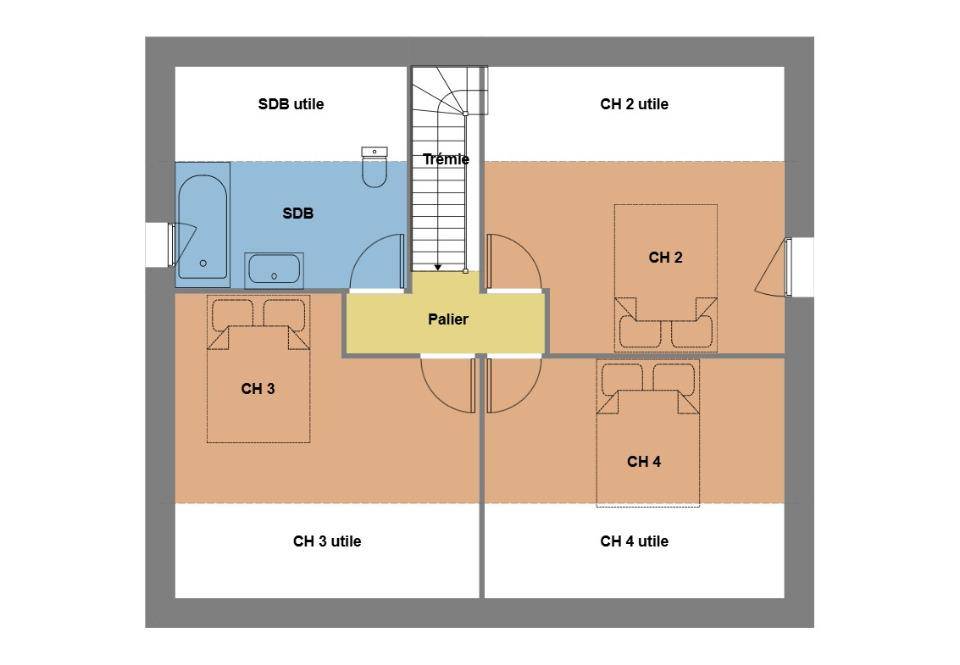 Cette maison compte 2 niveaux. Son intérieur offre quatre chambres, une cuisine et deux salles de bains. La maison est neuve.