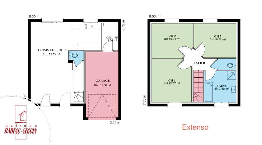 A la fois moderne et confortable, cette maison pas chère affiche l'un des tarifs les plus bas du catalogue Babeau-Seguin, constructeur offrant le meilleur rapport qualité/prix du marché. L'Extenso Sud GI est une maison familiale 100% personnalisable extrêmement complète.