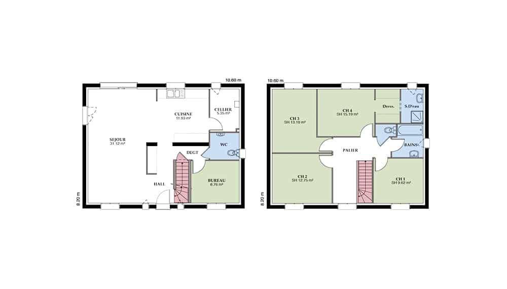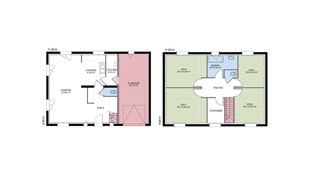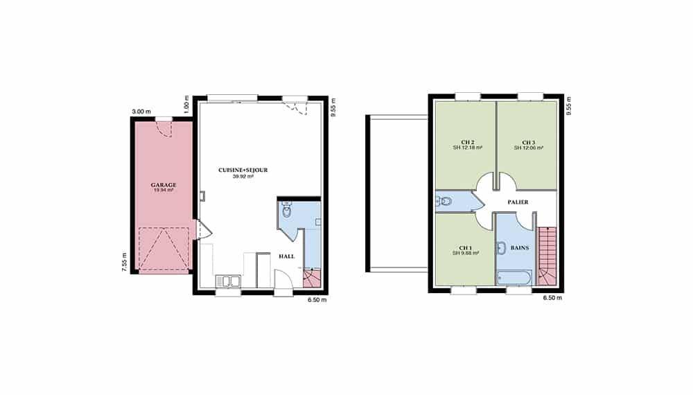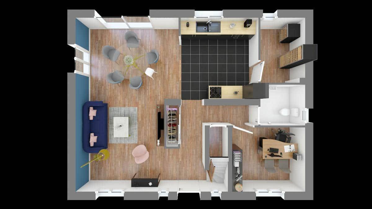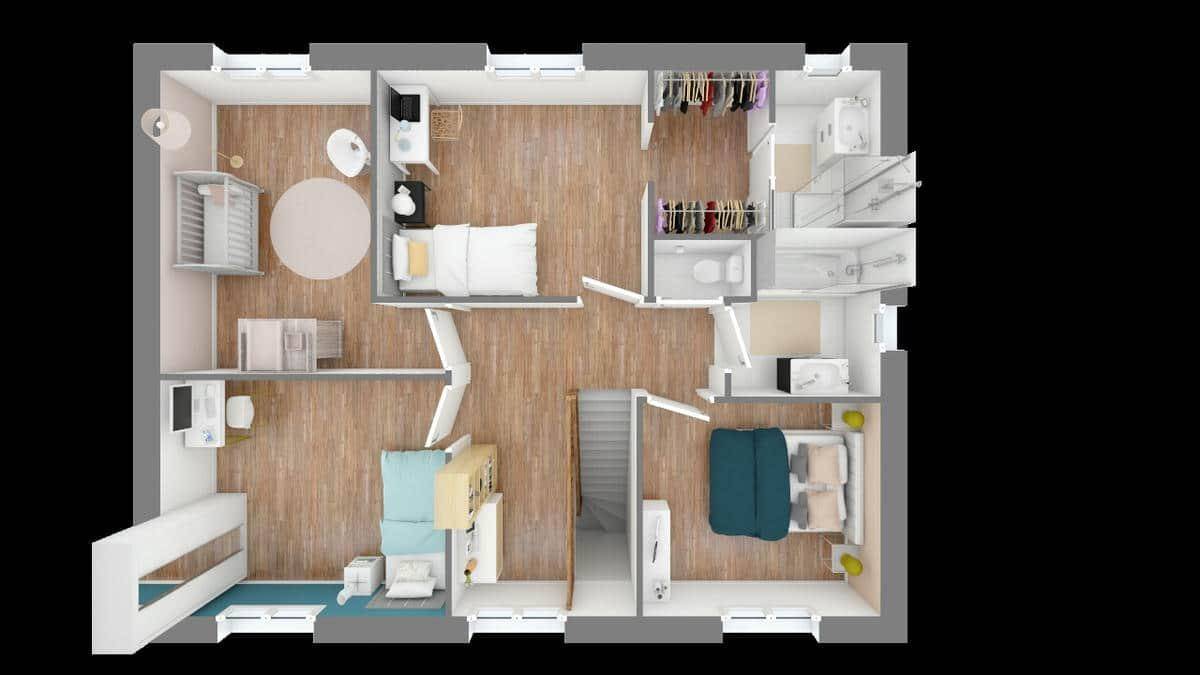 Superbe maison à étages de caractère, le modèle Langon est un modèle familial par excellence, qui s’adaptera facilement à votre mode de vie. Avec une surface de 117 m², cette demeure offre 4 pièces, dont 3 chambres, et se distingue par ses lignes géométriques et son design pratique.