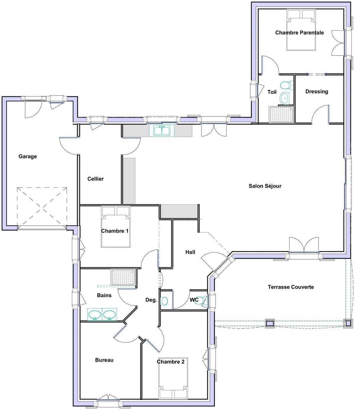 Avec une surface de 142 m², cette demeure offre de grands espaces et une architecture séduisante. Elle se compose de 3 chambres et de 4 pièces, dont un vaste séjour-salon-cuisine qui constitue le cœur de la maison. Le plan en L de la Camarsac permet une configuration intérieure très intéressante, avec un porche accueillant et un garage intégré pour plus de praticité.