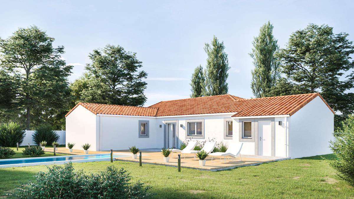 TERRAIN ET MAISONSur ce terrain, nous vous proposons cette maison neuve : le modèle Bugues, une maison traditionnelle de plain-pied conçue par Maisons Omega, détenteur du label Maisons de Qualité.Caractéristiques du modèle Bugues, maison traditionnelle de plain-pied.Un pavillon de charme pour toute la famille, élégant et pratique avec de beaux volumes. Une façade en décalé et un très joli auvent sur entrée vous assurent une maison originale et sympathique.Une jolie maison de plain-pied qui saura vous séduire.Le modèle Bugues se compose de trois chambres dans un coin nuit dédié, avec la salle d’eau. Les w.c. sont séparés. L’espace de jour offre un grand séjour-salon-cuisine traversant, ouvrant sur les deux côtés de l’habitation. Un cellier et le garage communiquant complètent cet ensemble confortable.Avec l’option volets battants et des finitions comme l’encadrement de fenêtres, l’habillage des évacuations d’eau de pluie, et la poutre de soutien de l’auvent lui confèrent un aspect très soigné. La toiture traditionnelle est du plus bel effet.Ce modèle peut disposer de plusieurs options telles que :- La domotique,- L’aérodynamique, la géothermie,- La menuiserie PVC ou alu,- Aqua air T-one.Les caractéristiques principales de cette maison de 84 m² incluent un garage intégré et un porche accueillant. Les options les plus demandées par nos clients, telles que les menuiseries en aluminium et les tuiles canal, sont également disponibles pour personnaliser votre future maison.Insistons sur le fait que cette maison neuve est basse consommation et conforme à la RE2020, garantissant ainsi une performance énergétique optimale et un confort de vie exceptionnel.N’attendez plus pour découvrir cette maison Bugues, un choix idéal pour une vie de famille harmonieuse et économe en énergie. Contactez-nous dès aujourd’hui