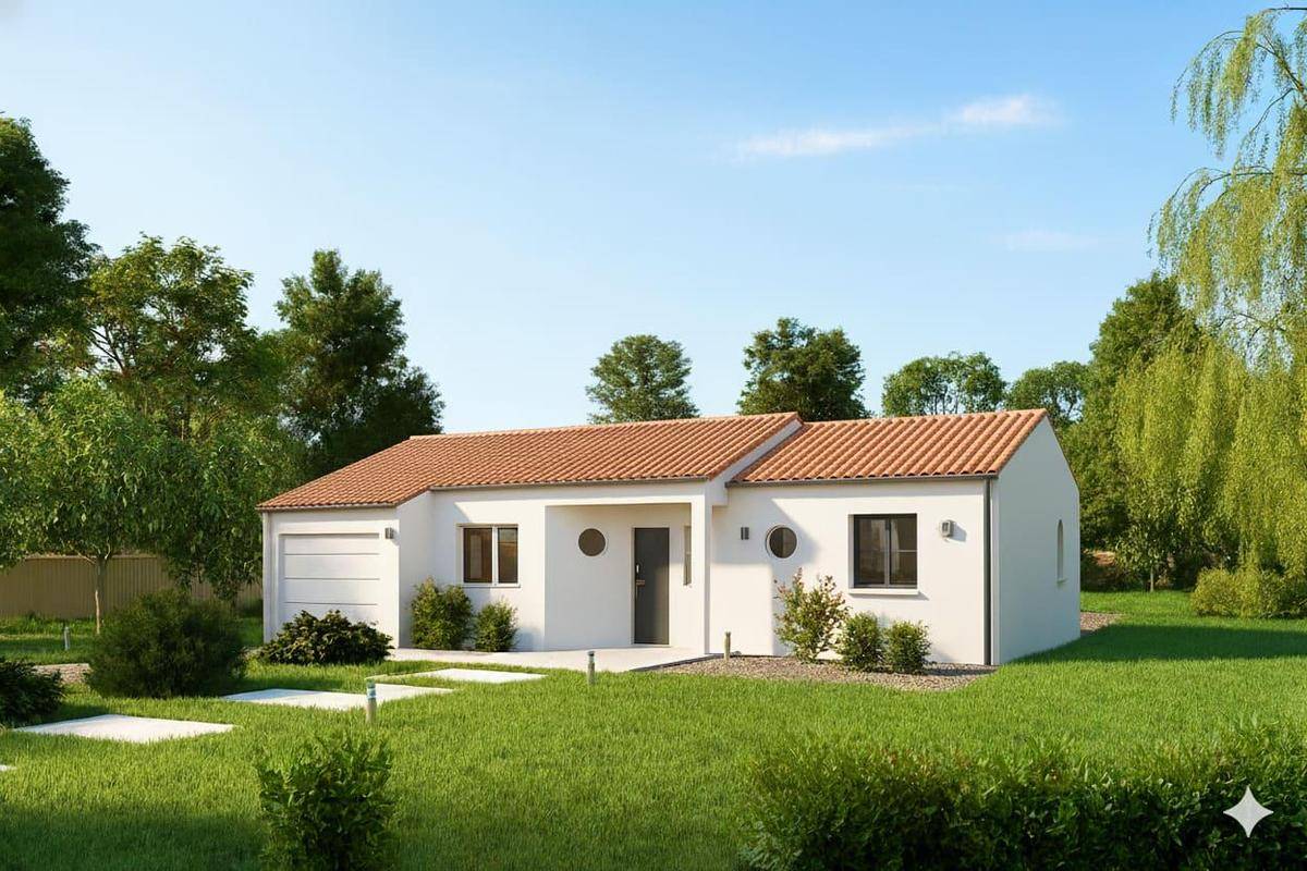 TERRAIN ET MAISONSur ce terrain, nous vous proposons cette maison neuve : le modèle Fronsac, une belle maison de plain-pied de 80 m², conçue par Maisons Omega, détenteur du label Maisons de Qualité.À la recherche du modèle idéal pour construire votre nouvelle demeure ? Vous allez aimer le modèle Fronsac, charmante maison à l’allure actuelle dont l’organisation intérieure est très fonctionnelle.Une demeure chic et éléganteUn enduit bi-tons pour les façades et une double toiture à deux pans ou quatre pans contribuent à donner à ce charmant logis une allure raffinée qui vous la fera aimer. Les menuiseries en aluminium ajoutent une touche de modernité et de durabilité.C’est une habitation qui se compose de trois chambres avec placards, dont une suite parentale avec salle de bains privative. L’espace jour, accueillant, est constitué d’un grand séjour-salon sur lequel donne une cuisine ouverte. Vous apprécierez sa luminosité, due aux grandes ouvertures.Petite note sympathique : la chambre parentale dispose d’une porte-fenêtre pour un accès direct dans le jardin !Le modèle Fronsac inclut également un garage intégré, une galerie et un porche, offrant ainsi des espaces pratiques et esthétiques.Cette maison neuve est basse consommation et conforme à la RE2020, garantissant une performance énergétique optimale et un confort de vie exceptionnel.C’est peut-être la maison dont vous rêvez depuis longtemps ? Si tel est le cas, n’hésitez pas à nous contacter afin d’obtenir plus d’informations sur ce modèle !