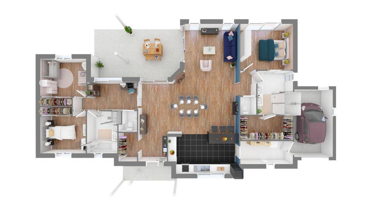 Votre projet de construction d’une maison neuve prend forme. Et vous avez décidé qu’il vous fallait une très grande demeure. En effet, vous voulez de l’espace ! Dans ce cas, la Neuvic est faite pour vous. Aussi belle que spacieuse, elle vous comblera.