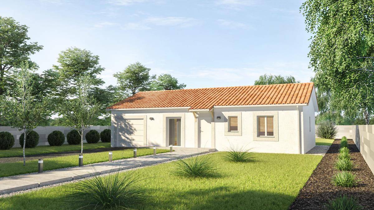 TERRAIN ET MAISONSur ce terrain, nous vous proposons cette maison neuve : le modèle Bugues, une maison traditionnelle de plain-pied conçue par Maisons Omega, détenteur du label Maisons de Qualité.Caractéristiques du modèle Bugues, maison traditionnelle de plain-pied.Un pavillon de charme pour toute la famille, élégant et pratique avec de beaux volumes. Une façade en décalé et un très joli auvent sur entrée vous assurent une maison originale et sympathique.Une jolie maison de plain-pied qui saura vous séduire.Le modèle Bugues se compose de trois chambres dans un coin nuit dédié, avec la salle d’eau. Les w.c. sont séparés. L’espace de jour offre un grand séjour-salon-cuisine traversant, ouvrant sur les deux côtés de l’habitation. Un cellier et le garage communiquant complètent cet ensemble confortable.Avec l’option volets battants et des finitions comme l’encadrement de fenêtres, l’habillage des évacuations d’eau de pluie, et la poutre de soutien de l’auvent lui confèrent un aspect très soigné. La toiture traditionnelle est du plus bel effet.Ce modèle peut disposer de plusieurs options telles que :- La domotique,- L’aérodynamique, la géothermie,- La menuiserie PVC ou alu,- Aqua air T-one.Les caractéristiques principales de cette maison de 84 m² incluent un garage intégré et un porche accueillant. Les options les plus demandées par nos clients, telles que les menuiseries en aluminium et les tuiles canal, sont également disponibles pour personnaliser votre future maison.Insistons sur le fait que cette maison neuve est basse consommation et conforme à la RE2020, garantissant ainsi une performance énergétique optimale et un confort de vie exceptionnel.N’attendez plus pour découvrir cette maison Bugues, un choix idéal pour une vie de famille harmonieuse et économe en énergie. Contactez-nous dès aujourd’hui