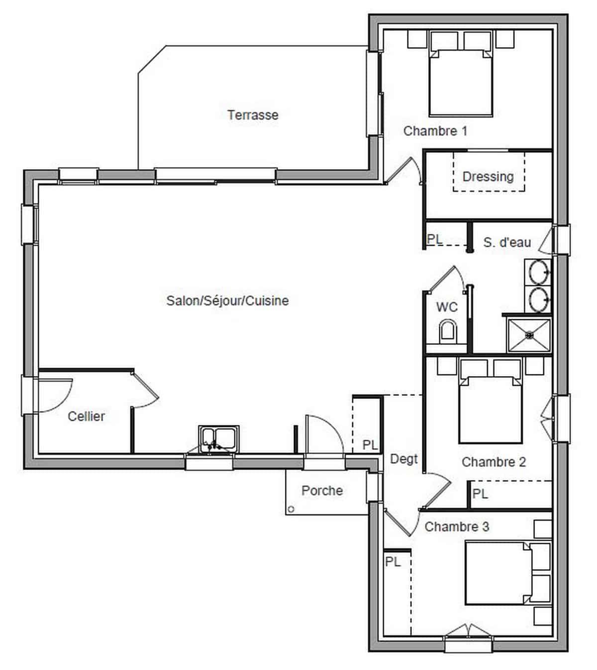 La Canéjan, avec ses 86 m², se distingue par son plan en T, offrant un agencement intérieur intelligent et optimisé. Elle se compose de 3 chambres avec placard ou dressing, une salle de bains avec WC séparés, un cellier et une cuisine ouverte sur un salon-séjour lumineux grâce à ses larges baies vitrées donnant sur le jardin.