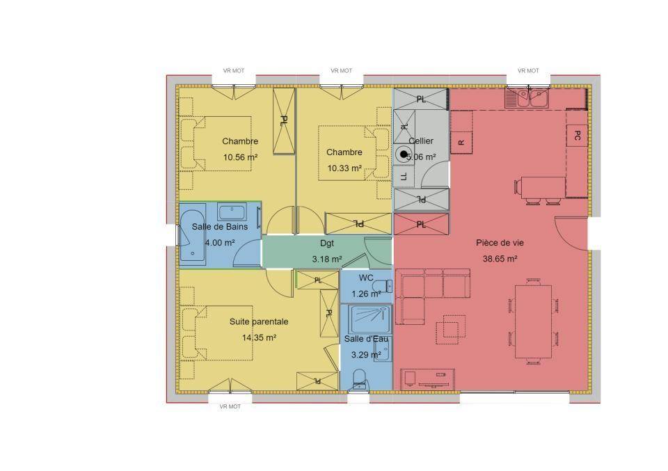 TERRAIN ET MAISONDécouvrez une maison moderne, élégante et performante, pensée pour offrir un confort optimal au quotidien !Avec ses 90 m² parfaitement agencés, cette maison conjugue design contemporain, efficacité énergétique et bien-être intérieur, le tout dans le respect de la réglementation environnementale RE2020.Dès l’entrée, vous serez séduit par sa grande pièce de vie lumineuse, ouverte sur la cuisine, idéale pour partager des moments conviviaux en famille ou entre amis.Les trois chambres offrent un espace intime et fonctionnel, tandis que le garage et le cellier apportent une véritable praticité au quotidien.Côté confort, rien n’a été laissé au hasard : volets roulants électriques, centralisation, domotique et surtout un système de chauffage par pompe à chaleur, à la fois économique et respectueux de l’environnement. Vous profitez ainsi d’une maison agréable à vivre, été comme hiver, tout en maîtrisant vos consommations énergétiques.Parce que chaque projet est unique, nous adaptons ensemble ce plan à votre mode de vie et à votre terrain.Mon rôle est de vous accompagner à chaque étape de votre construction, pour faire de ce projet une maison qui vous ressemble pleinement.Contactez-moi au (Numéro supprimé) pour en discuter et commencer à bâtir votre futur chez-vous.Olivier PUAUX – Conseiller Maisons France Confort