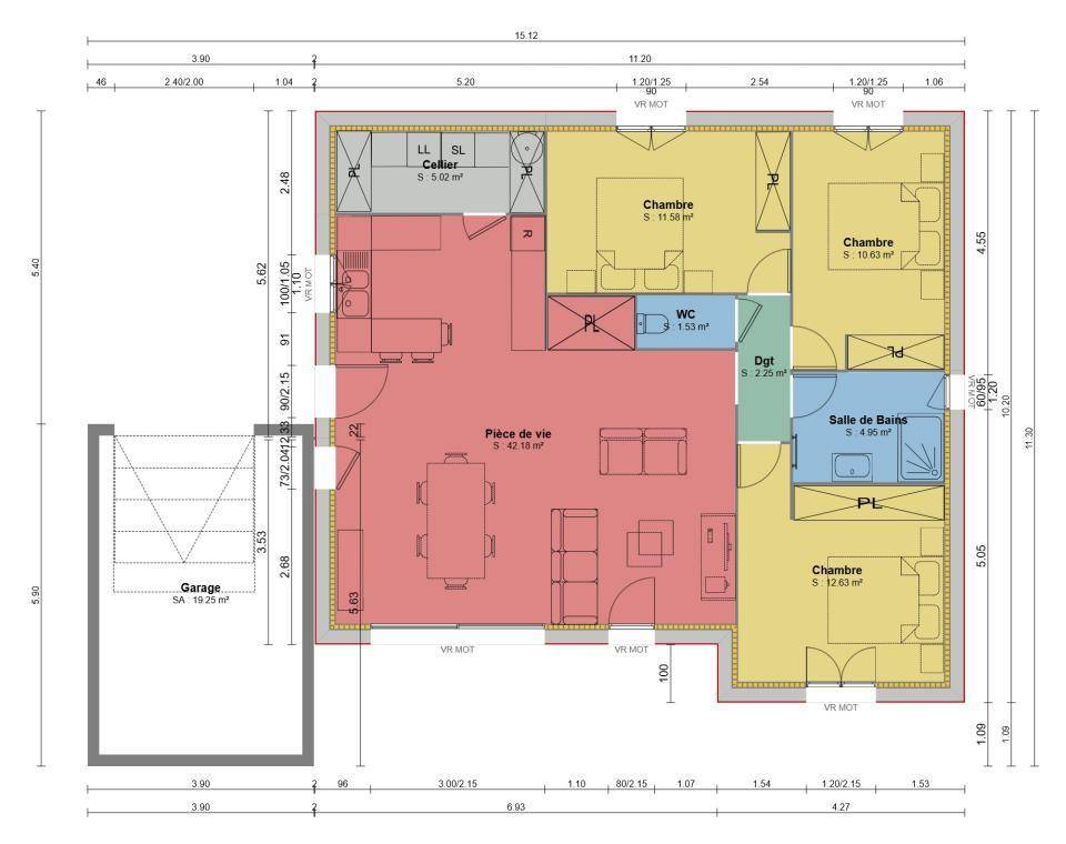 TERRAIN ET MAISONDécouvrez une maison moderne, élégante et performante, pensée pour offrir un confort optimal au quotidien !Avec ses 90 m² parfaitement agencés, cette maison conjugue design contemporain, efficacité énergétique et bien-être intérieur, le tout dans le respect de la réglementation environnementale RE2020.Dès l’entrée, vous serez séduit par sa grande pièce de vie lumineuse, ouverte sur la cuisine, idéale pour partager des moments conviviaux en famille ou entre amis.Les trois chambres offrent un espace intime et fonctionnel, tandis que le garage et le cellier apportent une véritable praticité au quotidien.Côté confort, rien n’a été laissé au hasard : volets roulants électriques, centralisation, domotique et surtout un système de chauffage par pompe à chaleur, à la fois économique et respectueux de l’environnement. Vous profitez ainsi d’une maison agréable à vivre, été comme hiver, tout en maîtrisant vos consommations énergétiques.Parce que chaque projet est unique, nous adaptons ensemble ce plan à votre mode de vie et à votre terrain.Mon rôle est de vous accompagner à chaque étape de votre construction, pour faire de ce projet une maison qui vous ressemble pleinement.Contactez-moi au (Numéro supprimé) pour en discuter et commencer à bâtir votre futur chez-vous.Olivier PUAUX – Conseiller Maisons France Confort