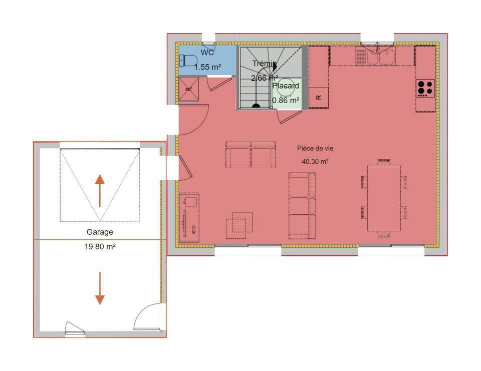 TERRAIN ET MAISONUne maison contemporaine qui allie élégance, confort et performance !Avec ses 80 m² parfaitement agencés, cette maison offre un style moderne et lumineux, pensé pour répondre aux exigences de confort d’aujourd’hui. Conforme à la réglementation environnementale RE2020, elle conjugue esthétique, efficacité énergétique et bien-être au quotidien.La pièce de vie de 37,80 m², véritable coeur de la maison, profite d’une luminosité traversante et d’un agencement fluide. La cuisine ouverte s’intègre harmonieusement pour créer un espace convivial et accueillant. Une verrière (en option) peut venir sublimer la séparation entre l’entrée et le séjour pour renforcer le caractère contemporain de l’ensemble.L’espace nuit se compose de trois chambres confortables avec rangements intégrés, d’une salle de bains fonctionnelle et d’un WC indépendant. Le cellier attenant à la cuisine facilite le rangement et communique directement avec le garage de 15,68 m², idéal pour le stationnement ou un espace de stockage complémentaire.Les prestations sont à la hauteur de vos attentes avec des volets roulants électriques et leur centralisation, une domotique intégrée pour plus de confort et un chauffage par pompe à chaleur à la fois économique et respectueux de l’environnementAdaptable à votre terrain et à votre mode de vie, ce modèle saura devenir la maison qui vous ressemble, alliant modernité, confort et praticité.Contactez-moi au (Numéro supprimé) pour en discuter et imaginer ensemble votre future maison.Olivier PUAUX – Conseiller Maisons France Confort