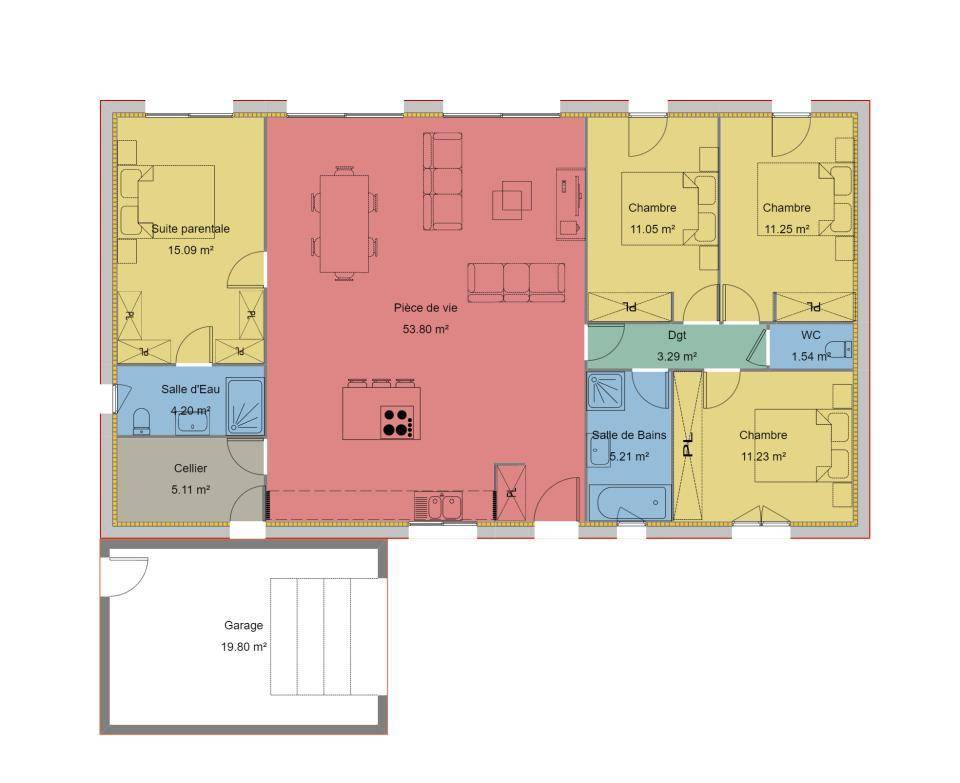 Cette maison de plain-pied, conforme à la Réglementation Environnementale RE2020, vous assure un habitat écologique et économe en énergie. De plus, elle est dotée d'un garage, directement accessible depuis la maison, pour votre plus grand confort au quotidien.