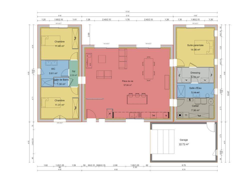 TERRAIN ET MAISONDécouvrez une maison moderne, élégante et performante, pensée pour offrir un confort optimal au quotidien !Avec ses 90 m² parfaitement agencés, cette maison conjugue design contemporain, efficacité énergétique et bien-être intérieur, le tout dans le respect de la réglementation environnementale RE2020.Dès l’entrée, vous serez séduit par sa grande pièce de vie lumineuse, ouverte sur la cuisine, idéale pour partager des moments conviviaux en famille ou entre amis.Les trois chambres offrent un espace intime et fonctionnel, tandis que le garage et le cellier apportent une véritable praticité au quotidien.Côté confort, rien n’a été laissé au hasard : volets roulants électriques, centralisation, domotique et surtout un système de chauffage par pompe à chaleur, à la fois économique et respectueux de l’environnement. Vous profitez ainsi d’une maison agréable à vivre, été comme hiver, tout en maîtrisant vos consommations énergétiques.Parce que chaque projet est unique, nous adaptons ensemble ce plan à votre mode de vie et à votre terrain.Mon rôle est de vous accompagner à chaque étape de votre construction, pour faire de ce projet une maison qui vous ressemble pleinement.Contactez-moi au (Numéro supprimé) pour en discuter et commencer à bâtir votre futur chez-vous.Olivier PUAUX – Conseiller Maisons France Confort