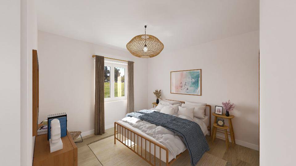 Il s'agit d'une maison de plain-pied. Son intérieur offre deux chambres, une cuisine et une salle de bains. La maison est neuve.