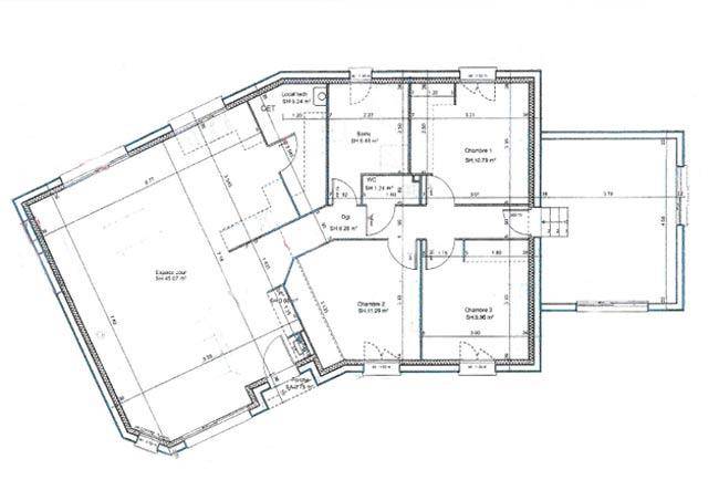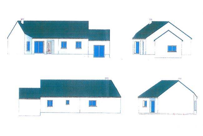 Conçue de plain-pied, elle se divise en trois chambres, une cuisine et une salle de bains. Cette maison est neuve.