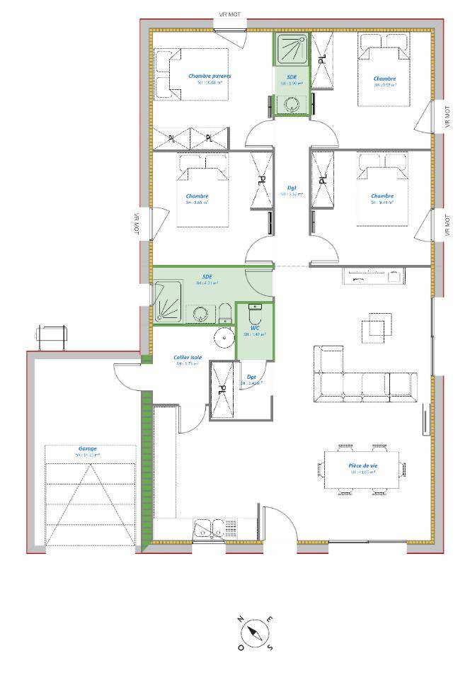 Maisons France Confort Lisieux vous propose de construire ce plain pied de 100m².