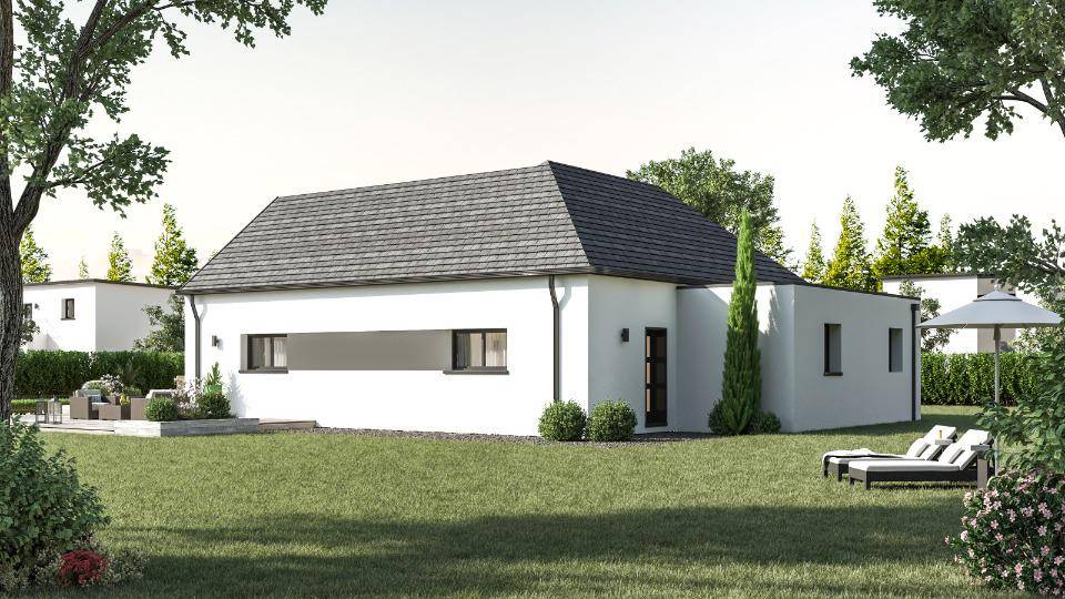 Sur le littoral atlantique et à 16 km de Quimper, à vendre à Kerlaz (29100), Maisons de l'Avenir Quimper vous présente cette maison de 5 pièces de plain-pied de 120 m². Elle offre quatre chambres, une cuisine et deux salles de bains.
