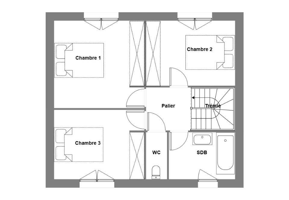 Cette maison compte 2 niveaux. Elle propose trois chambres, une cuisine et une salle de bains. La maison est neuve.