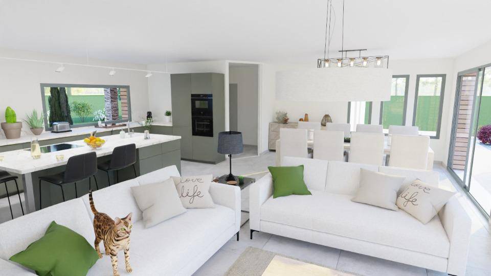 TERRAIN ET MAISON🏡 Villa contemporaine de 140 m² – Élégance, confort et modernitéDécouvrez cette magnifique villa contemporaine d’environ 140 m², alliant design moderne et fonctionnalité.Pensée pour le confort de toute la famille, elle offre des espaces lumineux et bien agencés.🛏️ Agencement intérieur4 chambres, dont une suite parentale avec salle d’eau privative,Deux salles d’eau supplémentaires,Deux WC indépendants,Un vaste espace de vie de plus de 60 m², convivial et baigné de lumière,Un cellier et une buanderie, pour un rangement optimal,Une terrasse couverte sur le côté, idéale pour profiter de l’extérieur en toute saison.⚙️ Prestations et finitionsChauffage gainable par pompe à chaleur (système Shogun),Menuiseries aluminium coloris RAL 7016,Volets roulants motorisés et centralisés avec sonde d’ensoleillement,Carrelage sur toute la surface,Salles de bains entièrement équipées,Possibilité de bardage bois, selon les autorisations d’urbanisme.🔒 Sécurité et garantiesContrat de Construction de Maison Individuelle (CCMI),Garantie prix, délais et livraison,Assurance dommage-ouvrage incluse,Maison conforme aux normes en vigueur (RT et réglementation actuelle).