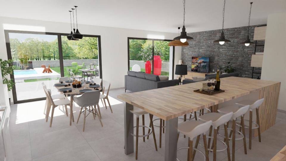 TERRAIN ET MAISON🏡 Villa contemporaine de 140 m² – Élégance, confort et modernitéDécouvrez cette magnifique villa contemporaine d’environ 140 m², alliant design moderne et fonctionnalité.Pensée pour le confort de toute la famille, elle offre des espaces lumineux et bien agencés.🛏️ Agencement intérieur4 chambres, dont une suite parentale avec salle d’eau privative,Deux salles d’eau supplémentaires,Deux WC indépendants,Un vaste espace de vie de plus de 60 m², convivial et baigné de lumière,Un cellier et une buanderie, pour un rangement optimal,Une terrasse couverte sur le côté, idéale pour profiter de l’extérieur en toute saison.⚙️ Prestations et finitionsChauffage gainable par pompe à chaleur (système Shogun),Menuiseries aluminium coloris RAL 7016,Volets roulants motorisés et centralisés avec sonde d’ensoleillement,Carrelage sur toute la surface,Salles de bains entièrement équipées,Possibilité de bardage bois, selon les autorisations d’urbanisme.🔒 Sécurité et garantiesContrat de Construction de Maison Individuelle (CCMI),Garantie prix, délais et livraison,Assurance dommage-ouvrage incluse,Maison conforme aux normes en vigueur (RT et réglementation actuelle).
