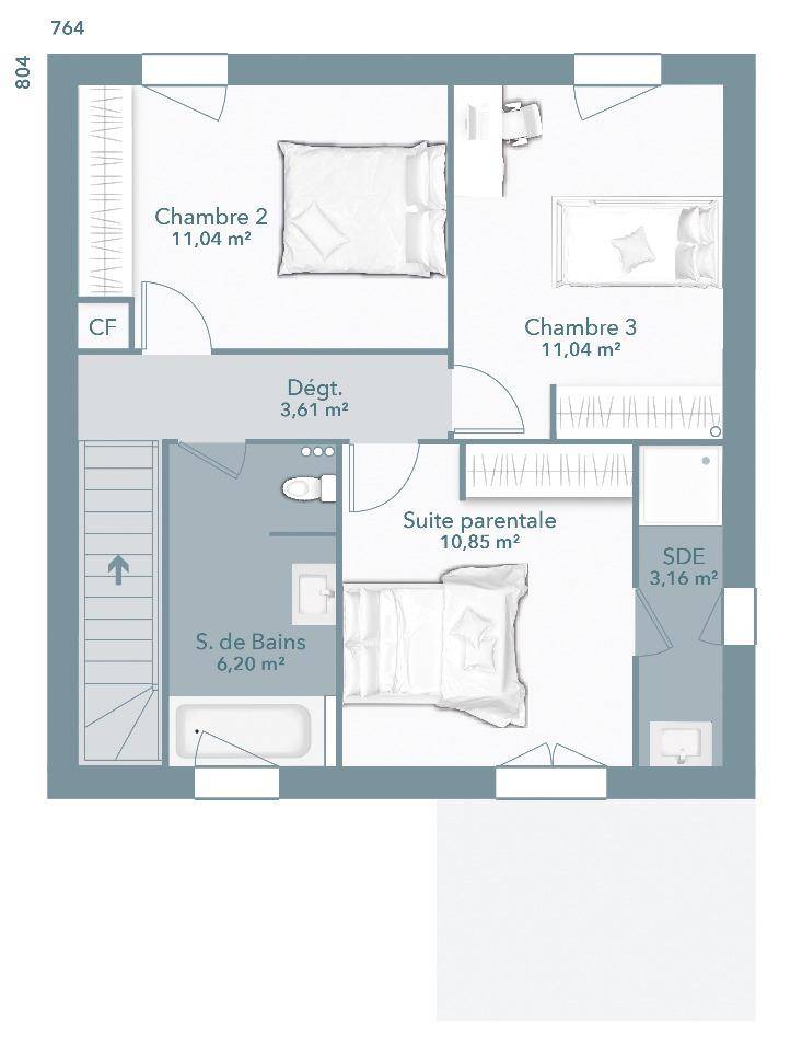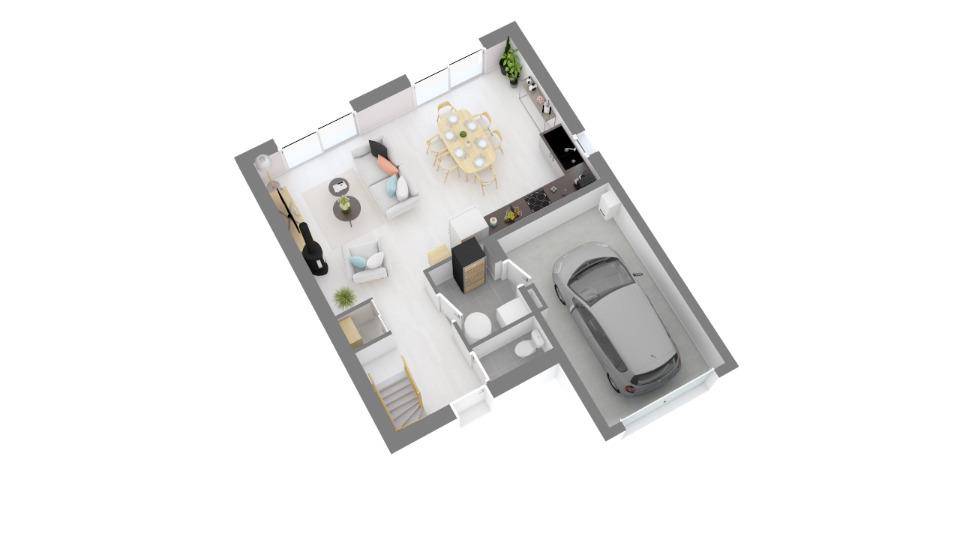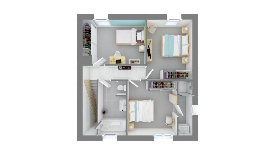 Il s'agit d'une maison de 2 niveaux. Elle compte trois chambres, une cuisine et deux salles de bains. Cette maison est neuve.