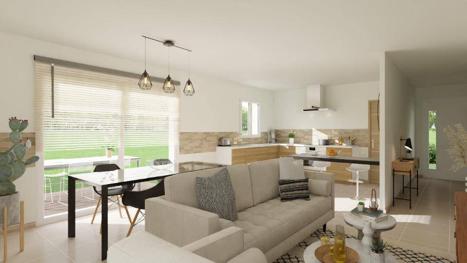 L'agencement de cette maison a été soigneusement étudié pour faciliter votre quotidien. L'intérieur de la villa est conçu avec soin pour offrir un espace de vie spacieux et fonctionnel. La grande pièce de vie constitue le coeur de la maison, offrant un espace convivial et lumineux où vous pourrez vous détendre et recevoir vos proches. Les grandes baies vitrées permettent une belle luminosité naturelle et offrent une vue sur le jardin.