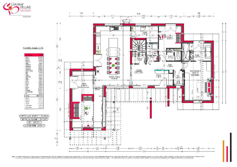 La maison développe environ 260 m² habitables, avec une architecture soignée, en plusieurs volumes, articulée autour de terrasses, pergolas et balcons qui épousent la maison sur tout son pourtour, créant une véritable connexion entre intérieur et extérieur.