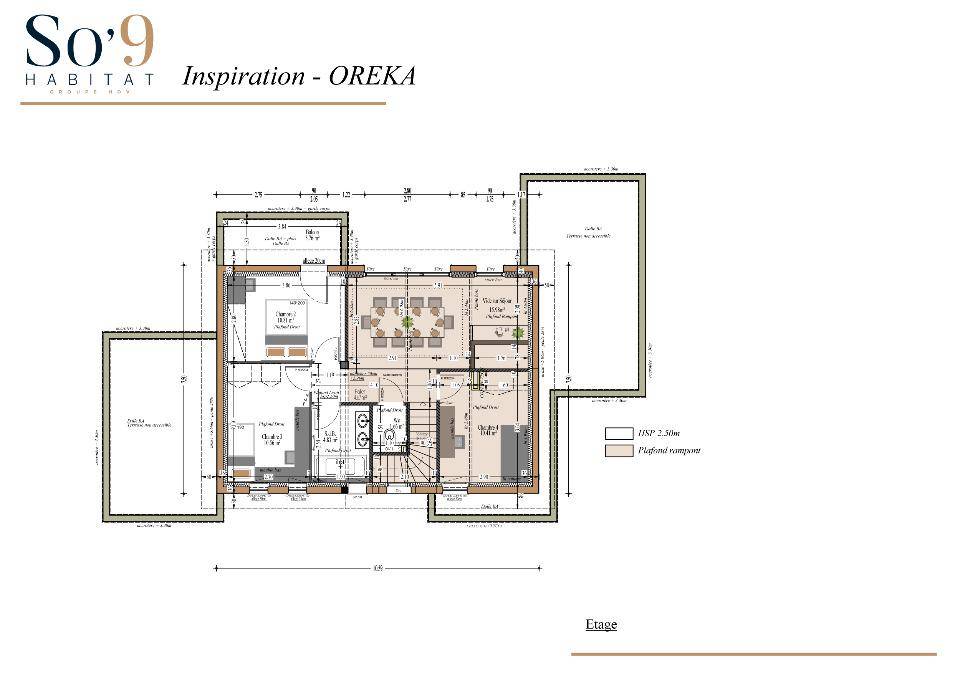 Cette suggestion de maison sur 2 niveaux est entièrement personnalisable ou adaptable à votre cahier des charges.