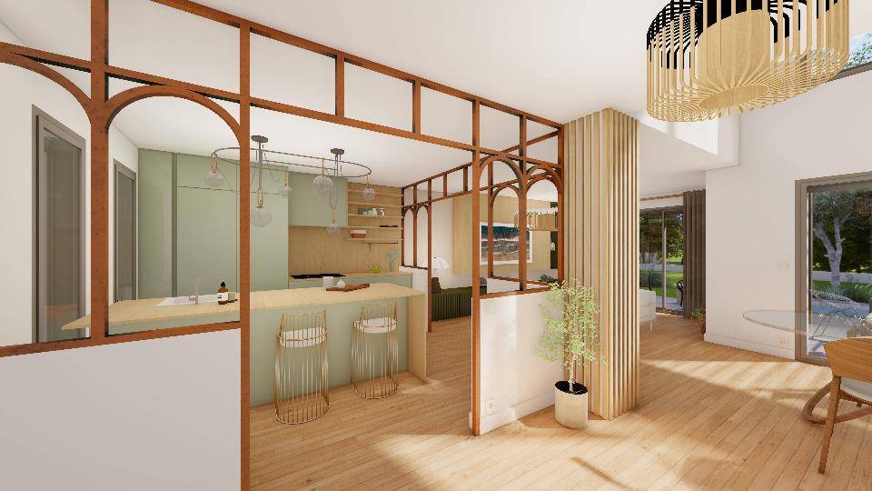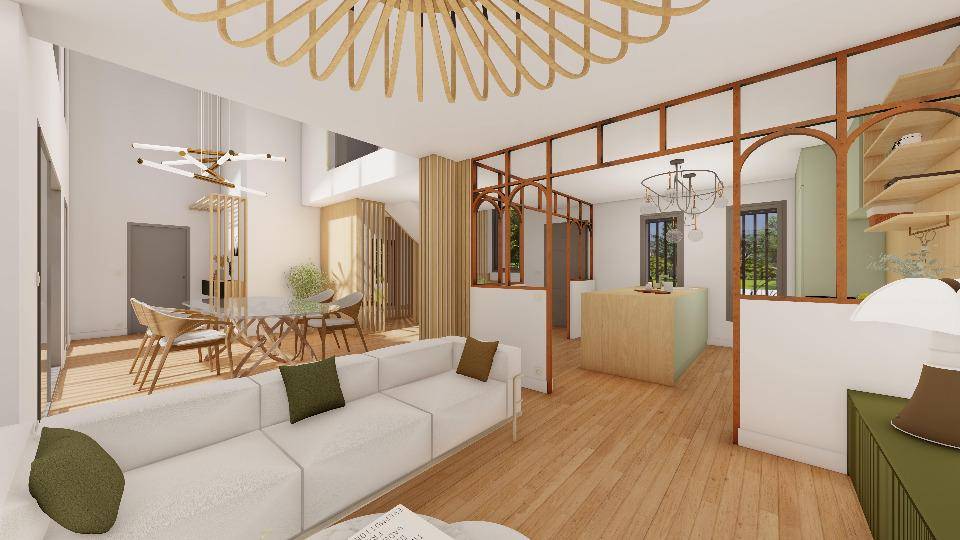 Un plafond rampant dans la pièce de vie apportant volume et luminosité