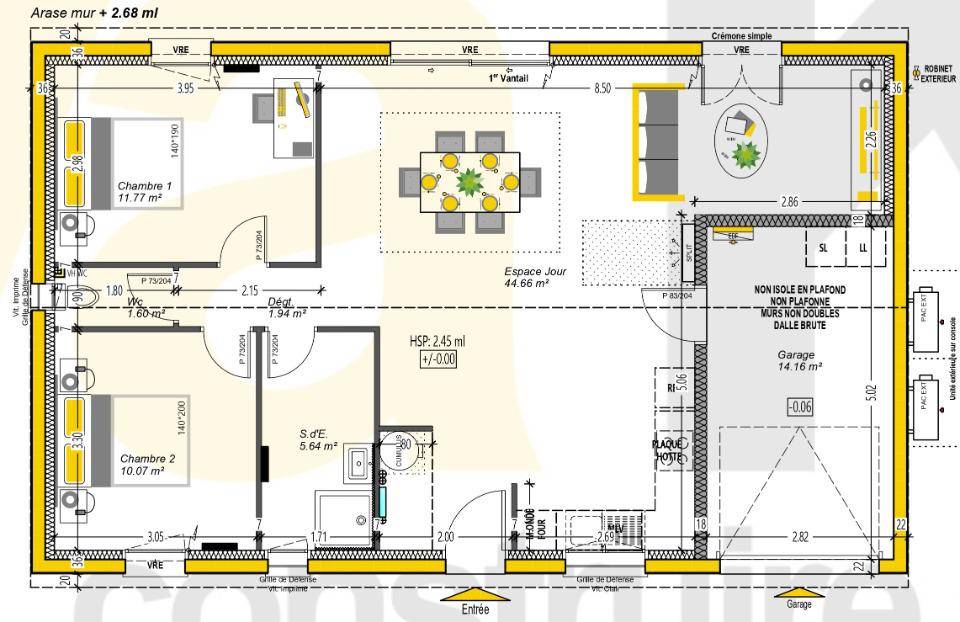 -Un garage de 14,16 m², transformable en pièce habitable si souhaité (chambre supplémentaire, bureau, suite parentale, etc.)
