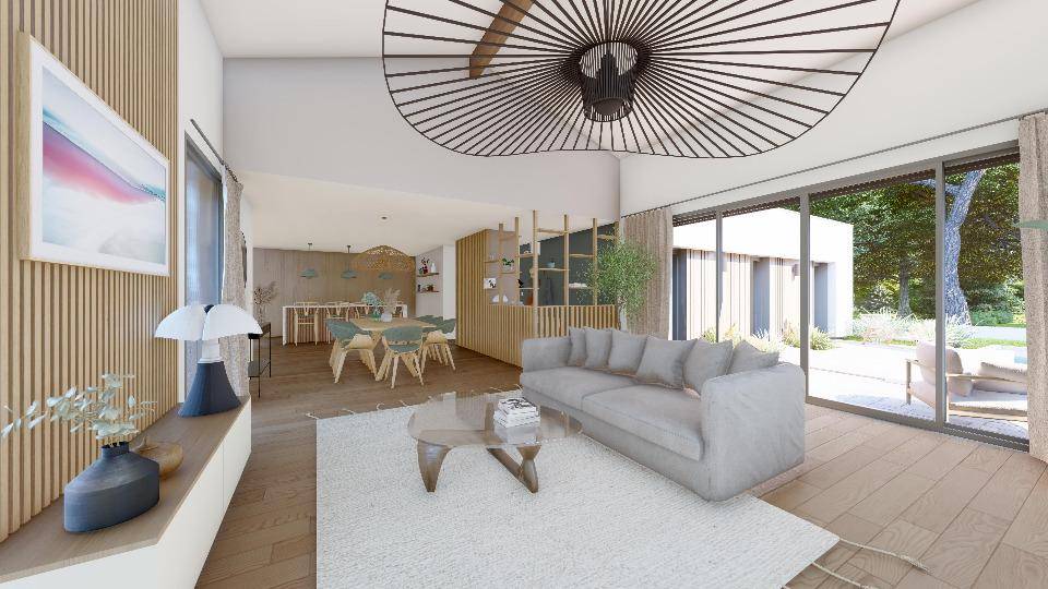 Avec 20% d'emprise au sol, vous aurez le droit de construire jusqu'à 170m2 de plain pied. Les constructions à étage sont également autorisées. Par exemple cette belle contemporaine avec plafond cathédrale et une magnifique ouverture vers le jardin, pour profiter de la terrasse et de la piscine.