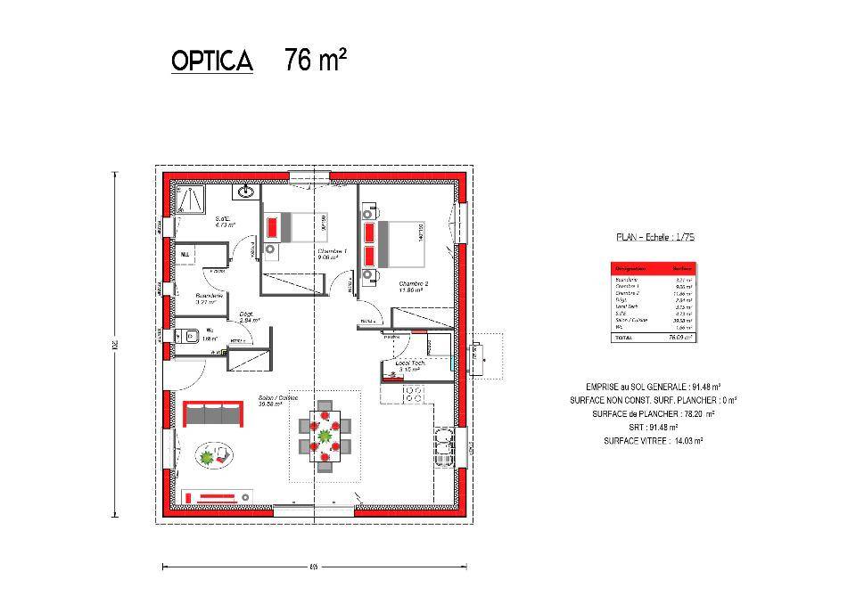 🏠 Exemple de projet proposé : Maison contemporaine de plain-pied de 76 m², comprenant :