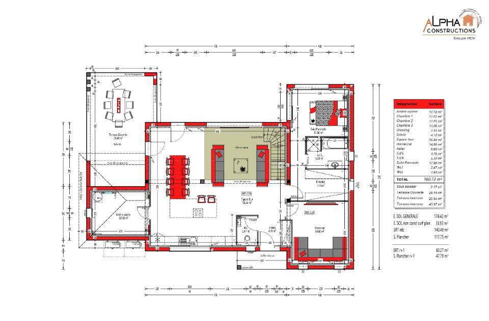 Le modèle proposé est une maison contemporaine de 160 m² habitables, au design moderne et lumineux, comprenant :