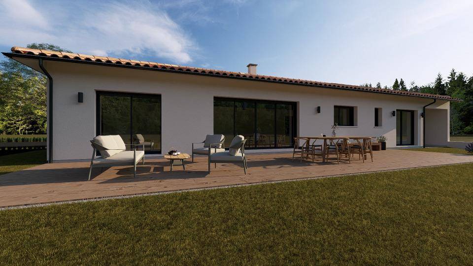 Une maison de plain pied de 130 m² aux volumes généreux et à l'agencement fonctionnel.