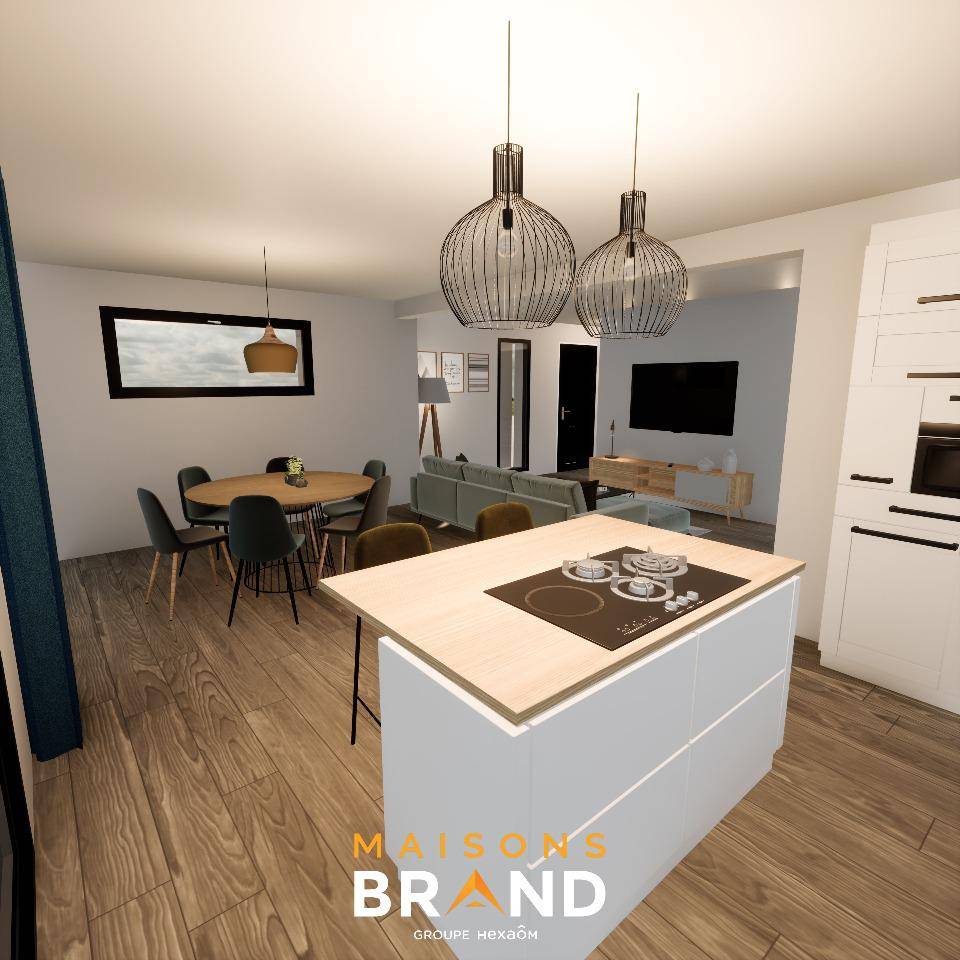 Proche de Colmar - À vendre à Houssen (68125) : maison neuve 5 pièces de 118 m² et de 529 m² de terrain. Elle comporte quatre chambres, une cuisine et deux salles de bains.