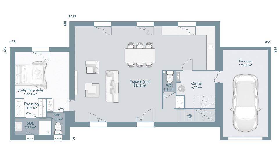 La Maison BASTIDE 125 : Luxe de l'Espace et Performance Découvrez la Bastide en 5 chambres (R+1). Elle offre : une suite parentale complète en rez-de-chaussée, une pièce de vie de plus de 50 m², et à l'étage, quatre chambres. Conçue selon la RE 2020.