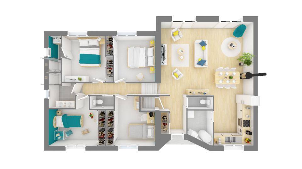TERRAIN ET MAISONLe modèle AUSTRAL 77m² est une maison à étage qui vous plaira par sa simplicité et son agencement pensé pour améliorer votre confort de vie. Au rez de chaussée, vous disposerez d’un espace vie de plus de 30 m² communiquant sur un garage, d’un coin rangement et un WC indépendant. A l’étage, vous trouverez trois belles chambres, un dressing et une salle de bains. Cette maison est à construire dans le département du Tarn, l’Aude, l’Hérault, la Haute-Garonne ainsi que les Pyrénées Orientales par Oc résidences, votre constructeur sur mesure en Occitanie.