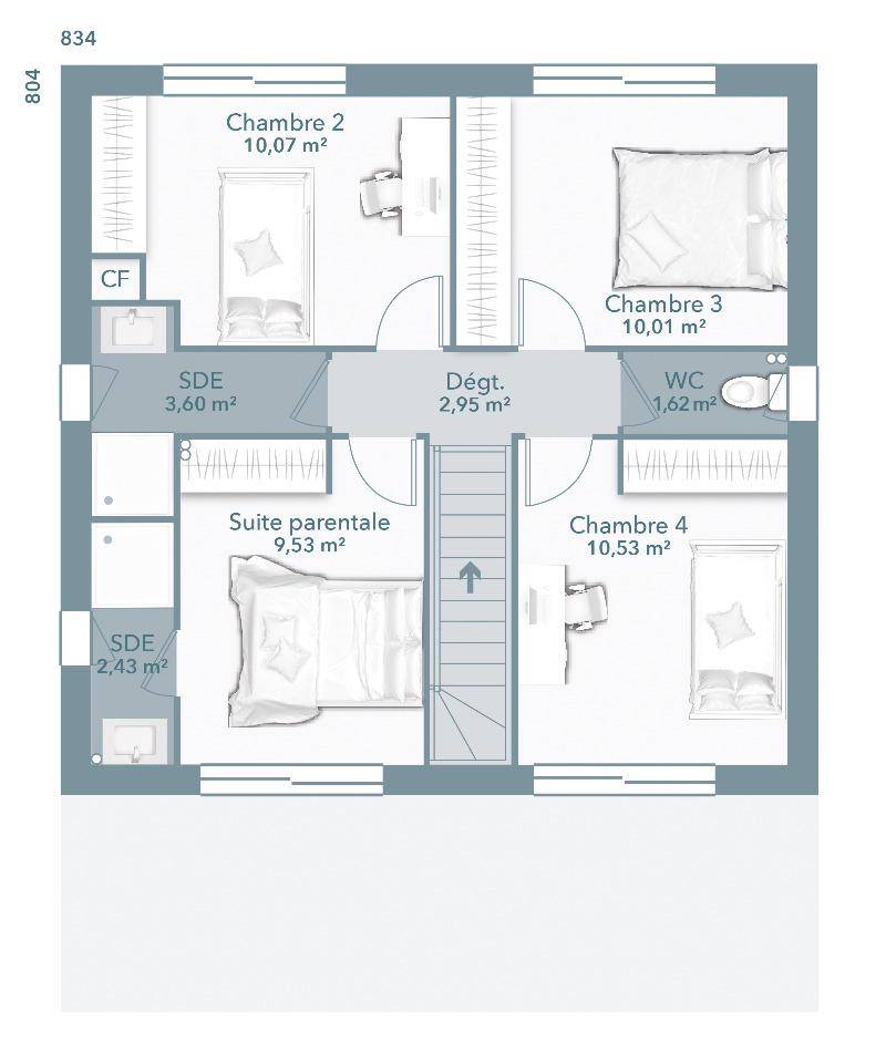 L'agence Maisons France Confort d'AUCAMVILLE a conçu pour vous cette maison neuve de 95m² à 5 minutes de LAPEYROUSE FOSSAT . OPTIMA 95 E GI-SD est une construction traditionnelle à étage, fonctionnelle et économe que vous pouvez totalement personnaliser. Elle se compose d'une entrée, d'un espace de vie lumineux avec cuisine ouverte de 33m², d'un cellier et WC. A l'étage, 4 chambres avec la possibilité de faire une suite parentale, une salle de bains et WC. Le garage de 15m² est intégré à la maison et accessible par la cuisine. Cette habitation est présentée sur une parcelle constructible de 1260 m².