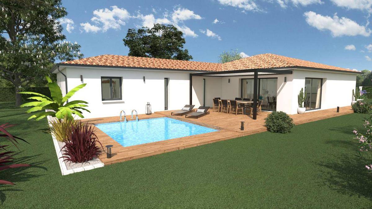 TERRAIN ET MAISONDécouvrez Théa, une maison qui allie avec finesse architecture moderne et agencement optimisé. Avec 128 m², elle offre de grands espaces lumineux et un confort inégalé.Son entrée accueillante vous mène à une pièce de vie spacieuse de 53 m², où cuisine ouverte, salon et salle à manger s’harmonisent parfaitement. Grâce à ses grandes baies vitrées, cet espace bénéficie d’une luminosité naturelle exceptionnelle, avec un accès direct à votre future terrasse et à votre jardin.Côté nuit, la maison propose :- Une suite parentale, véritable cocon d’intimité- Deux chambres confortables- Un bureau, idéal pour le télétravail- Une salle de bain et une salle d’eau, pensées pour le bien-être de toute la familleLe garage attenant, véritable atout au quotidien, dispose d’un accès direct à un cellier.Tous nos modèles de maison peuvent être personnalisés en fonction de vos besoins et envies !Dans un petit lotissement composé de 5 lots, nous vous proposons une parcelle d’environ 620 m² viabilisée et pourvue du tout à l’égout. Le tout est situé dans un environnement résidentiel paisible où l’intimité est préservée.La commune est dynamique et dispose de toutes les commodités.