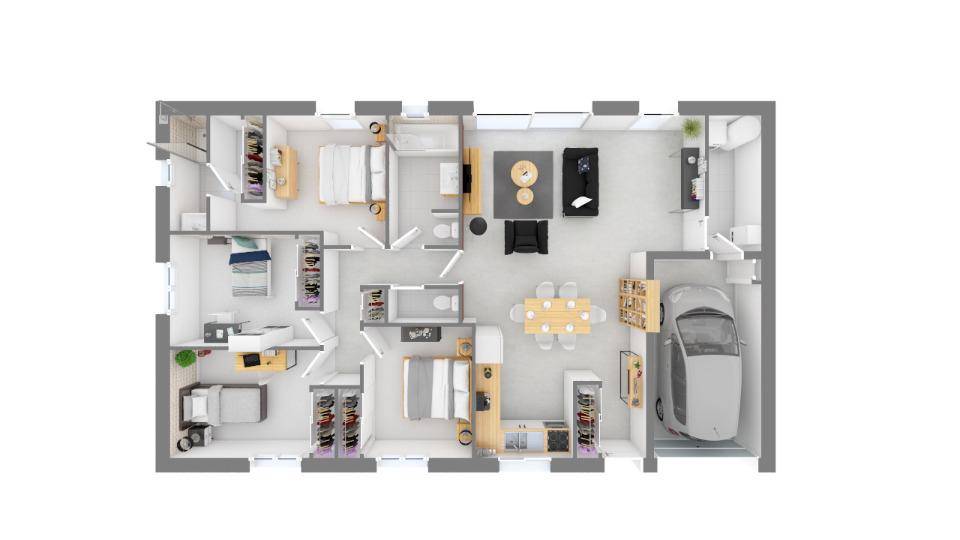 TERRAIN ET MAISONLe modèle AUSTRAL 93 est une maison à étage aux lignes sobres et épurées. Son Salon/Séjour de plus de 39 m² m² offre un bel espace de vie à toute la famille. Un garage attenant à l’espace cuisine augmentera vos espaces de rangements. A l’étage, vous trouverez quatre chambres avec placard et une salle de bains. Le modèle AUSTRAL 93 est une maison familiale et coquette qui plaira par son agencement pensé pour votre confort de vie, par Oc résidences, votre constructeur sur mesure en Occitanie.