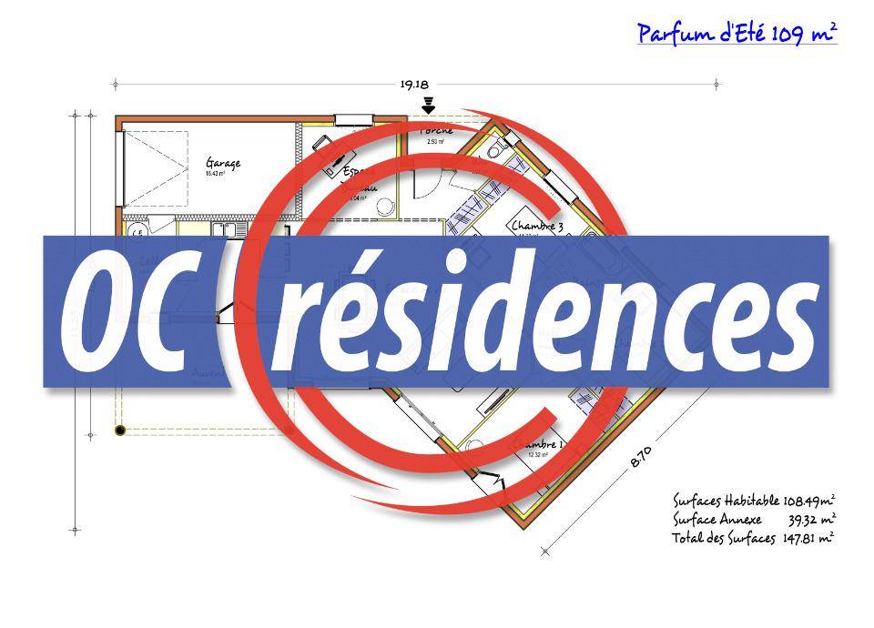 Le Parfum d'été a le raffinement de la Provence avec sa forme en V. Son décroché de toiture, ses tuiles vieillies, ses encadrements de fenêtres donneront à votre maison tout son charme. Son hall d'entrée avec placards et WC s'ouvrira sur un lumineux Salon/Séjour de plus de 50 m2. Sa cuisine ouverte donnera sur un Auvent de 20 m² et un cellier communiquant avec un garage de 16 m². Le coté nuit s'articule autour de trois chambres avec placard et d'une salle de bain familiale. Un bureau viendra agrémenter votre quotidien. Cette maison est à construire dans le département du Tarn, l'Aude, l'Hérault, la Haute-Garonne ainsi que les Pyrénées Orientales par Oc résidences, votre constructeur sur mesure en Occitanie.