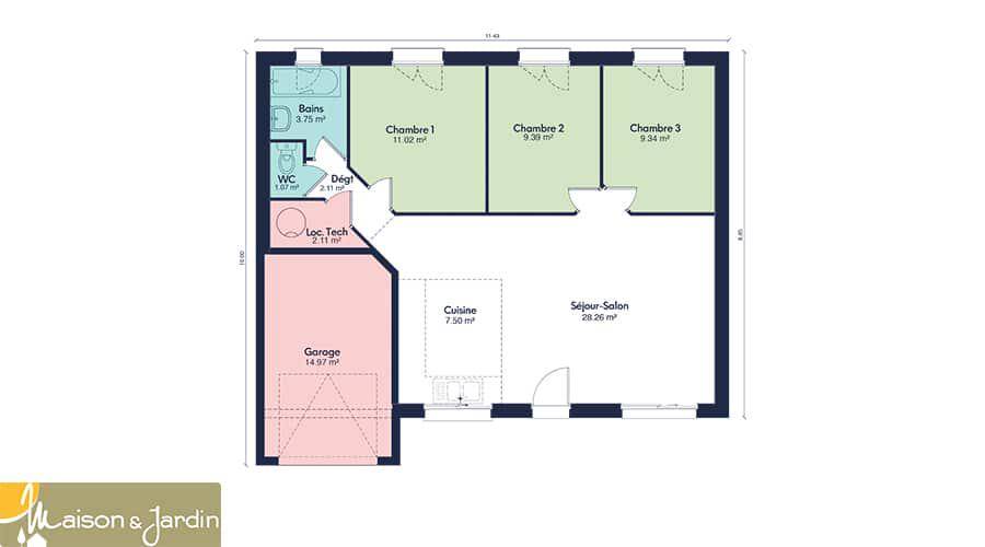 TERRAIN ET MAISONNous vous proposons cette maison neuve, baptisée Focus 75, une perle rare dans notre gamme MAISON ET JARDIN qui incarne le meilleur rapport qualité-prix. Conçue pour répondre aux attentes des plus exigeants, cette maison de 75 m² au look moderne et aux finitions soignées est l’incarnation même de l’efficacité et du confort. Avec ses 3 chambres et ses 4 pièces au total, elle est idéale pour accueillir une famille désireuse de s’épanouir dans un espace à la fois fonctionnel et accueillant.La Focus 75 se distingue par sa construction robuste en parpaings, gage de durabilité et de solidité. Son garage intégré de 15 m² offre non seulement un espace sécurisé pour votre véhicule mais aussi un espace de rangement supplémentaire, optimisant ainsi chaque mètre carré de la maison.L’une des caractéristiques les plus remarquables de cette maison est son engagement envers l’environnement et votre portefeuille. Conforme à la norme RE2020, la Focus 75 est une maison basse consommation qui vous permettra de réaliser d’importantes économies d’énergie tout en réduisant votre empreinte carbone. Cet aspect est d’autant plus important aujourd’hui, où la conscience écologique et la recherche d’efficacité énergétique sont au cœur des préoccupations des nouveaux propriétaires.Les options les plus plébiscitées par nos clients, telles que des solutions d’isolation avancées, des systèmes de chauffage performants et des équipements éco-énergétiques, sont disponibles pour personnaliser votre maison selon vos besoins et vos envies. La Focus 75 est donc une toile vierge prête à être adaptée à votre image, garantissant un confort de vie inégalé.En choisissant la Focus 75, vous optez pour une maison qui allie esthétique moderne, fonctionnalité et respect de l’environnement, le tout pour un excellent rapport qualité/prix. Ne manquez pas l’opportunité de construire la maison de vos rêves, une maison qui répond à vos exigences d’aujourd’hui et de demain. Contactez-nous pour plus d’informations