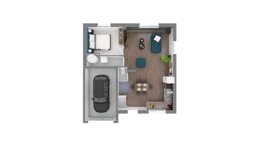 La Focus 80C se distingue par sa construction en parpaings, gage de solidité et de durabilité, et intègre un garage, répondant ainsi aux besoins de commodité et de sécurité de votre véhicule. Son architecture moderne, caractérisée par des lignes épurées et une optimisation de l'espace, est conçue pour maximiser le confort de vie tout en offrant un style contemporain qui ne manquera pas de séduire.