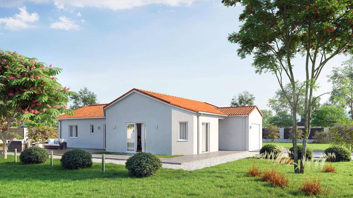 TERRAIN ET MAISON« Sur ce terrain, nous vous proposons cette maison neuve : la Garelle, un modèle conçu par Pavillons Parot. Cette très belle maison traditionnelle de plain-pied en forme de T est idéale pour ceux qui recherchent de belles dimensions tout en possédant un terrain étroit. Avec une superficie de 102 m², elle offre un espace de vie généreux et bien agencé.La Garelle se compose de 4 pièces, dont 3 jolies chambres, parfaites pour accueillir une famille. Le salon-séjour, niché dans un oriel, confère à cette maison une esthétique unique et très design. Vous apprécierez également le cloisonnement séparant l’entrée du séjour, offrant ainsi une organisation optimale des espaces.Les chambres donnent sur un dégagement, créant un espace nuit bien délimité. Un cellier pratique et un garage intégré, avec une porte communicante entre les deux, ajoutent au confort de cette demeure. Vous n’aurez plus besoin de sortir pour accéder à votre garage, un détail pratique qui fait toute la différence.Construite en terre cuite h10, cette maison est non seulement esthétique mais aussi durable. De plus, elle est conforme à la réglementation RE2020, garantissant une basse consommation énergétique et un respect des normes environnementales actuelles.Cette confortable demeure est idéale pour les familles souhaitant disposer d’un bon confort bien organisé sur un seul niveau, dans une habitation à l’architecture originale. Ne manquez pas cette opportunité unique de vivre dans une maison alliant modernité, praticité et respect de l’environnement.
