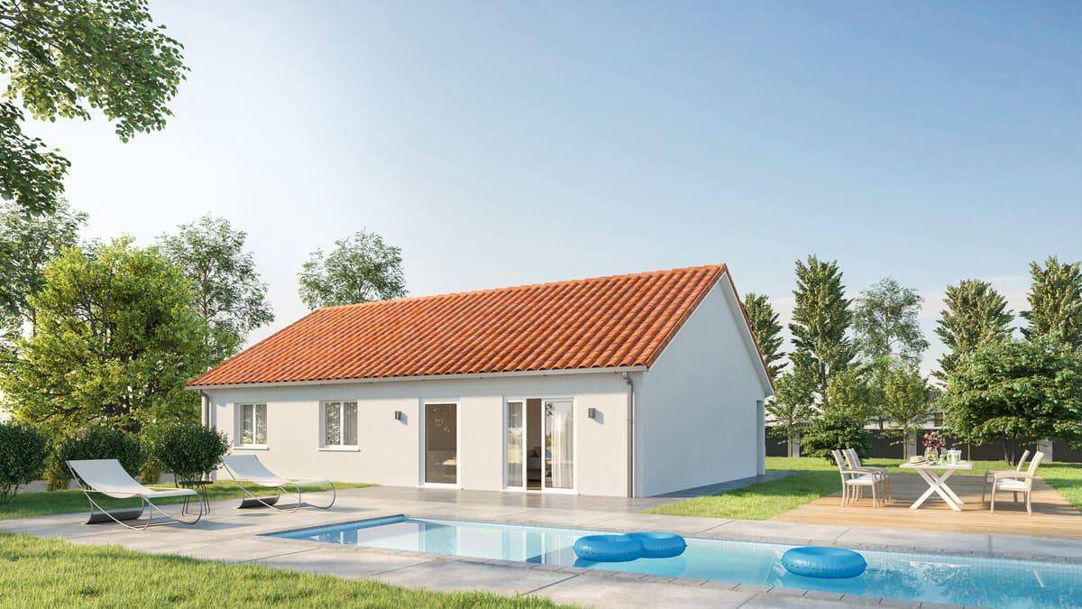 TERRAIN ET MAISONSur ce terrain, nous vous proposons cette maison neuve : l’Intimity I de notre gamme Evasihome.Chez Babeau-Seguin, nous voulons en faire toujours plus pour nos clients ! C’est pourquoi notre bureau d’étude a imaginé cette gamme de modèles tous dotés d’une suite parentale généreuse. Parce qu’en tant que parents, vous avez besoin d’un peu d’intimité et de tranquillité, même si vous adorez être avec votre petite famille ! Evasihome Intimity I répond à cette attente.Un joli pavillon où tout le monde se sent à l’aiseEvasihome Intimity I est un pavillon de plain-pied avec garage intégré, agrémenté d’une terrasse semi-couverte. La suite parentale comprend un beau dressing et une salle d’eau, pour un confort maximum. Une porte-fenêtre donne directement sur la terrasse, pour plus d’autonomie ! Avec ses 109 m², cette maison dispose de quatre chambres, dont une suite parentale, toutes dotées de placards pour la tribu. Une salle de bain avec w.c. séparés, une grande pièce de vie avec cuisine ouverte et un cellier complètent l’ensemble.Une maison aux dimensions adaptéesL’Intimity I vous est proposée avec une surface de 109 m² pour s’adapter aux besoins de votre famille. Craquez dès aujourd’hui pour ce merveilleux modèle et venez nous rendre visite en agence, nous vous dirons tout ce que vous voulez savoir sur votre future maison ! De plus, nous vous présenterons, si vous le souhaitez, un catalogue de terrains à bâtir afin de vous simplifier la vie.Quoi de mieux pour ce terrain que le modèle Intimity I de 109 m². L’objectif de cette maison est simple : allier une forme traditionnelle rassurante et un intérieur moderne et adapté aux exigences d’aujourd’hui, le tout avec un maximum d’équipements de série (4 chambres, une suite parentale avec dressing et salle de bain, terrasse couverte).Les caractéristiques principales de cette maison incluent une verrière, une suite parentale, une terrasse couverte et des prises USB murales. Les options les plus demandées par nos cli