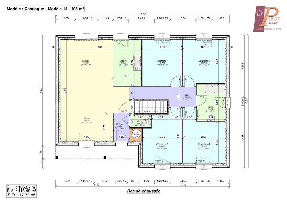 Sur ce terrain, nous vous proposons cette maison neuve, modèle Eclipse, construite par Pavillons Parot. D’architecture classique, cette superbe maison traditionnelle familiale a été spécialement pensée pour les terrains en pente. Elle est particulièrement appréciée dans les Vosges.